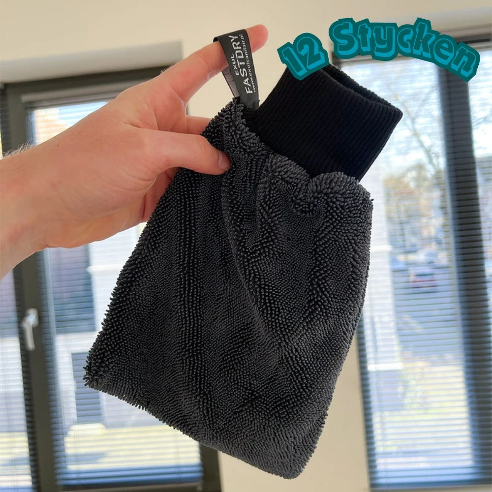 Att torka är vanligtvis tidskrävande, men med FASTDRY Handskar är det klart på några sekunder. För handen över den våta ytan – så är det torrt direkt. Glöm billiga mikrofiberdukar eller handdukar – det här är det nya sättet att torka.