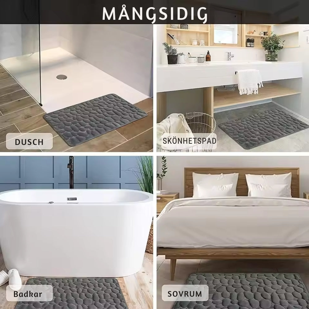 STEPCLOUD™ badrumsmatta ger en touch av elegans till ditt hem med sitt intrikata kullerstenmönster. Den mjuka och absorberande texturen ger komfort och funktionalitet, vilket gör den till ett elegant och praktiskt tillskott till ditt hem.